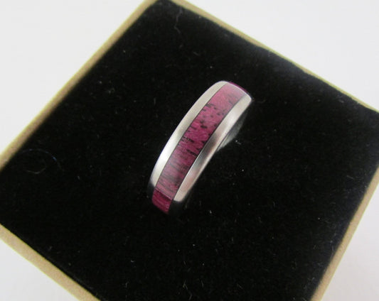 Wooden ring in Purple heart and Titanium.